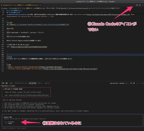 背景 CursorとClaude Codeを連携しようとしたのですが、 このように連携されてはいるはずなのに、Claude Codeのマークが出ずチャットスタイルで連携することができませんでした。 環境 macOS v15.5 Cursor v1.1.6 Claude Code v1.0.35