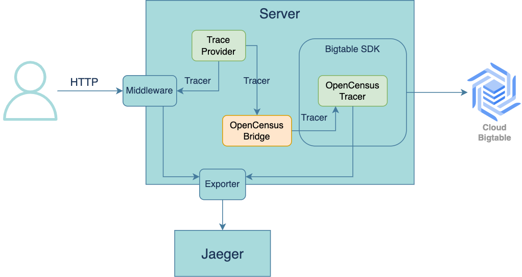 import ( octrace "go.opencensus.io/trace" "go.opentelemetry.io/otel" "go.opentelemetry.io/otel/bridge/opencensus" ) func init() { bridge := otel.GetTracerProvider().Tracer("go.opentelemetry.io/otel/bridge/opencensus") octrace.DefaultTracer = opencensus.NewTracer(bridge) }
